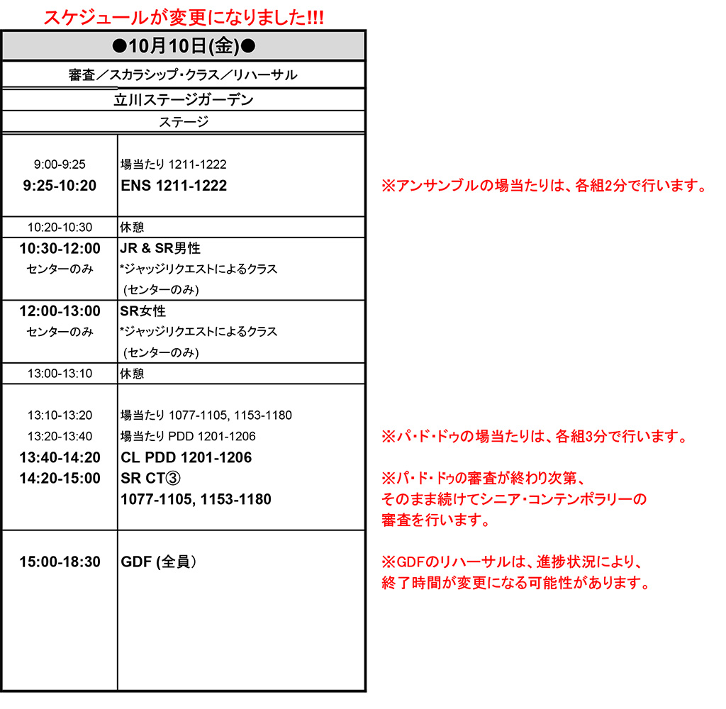 10月10日のスケジュール変更